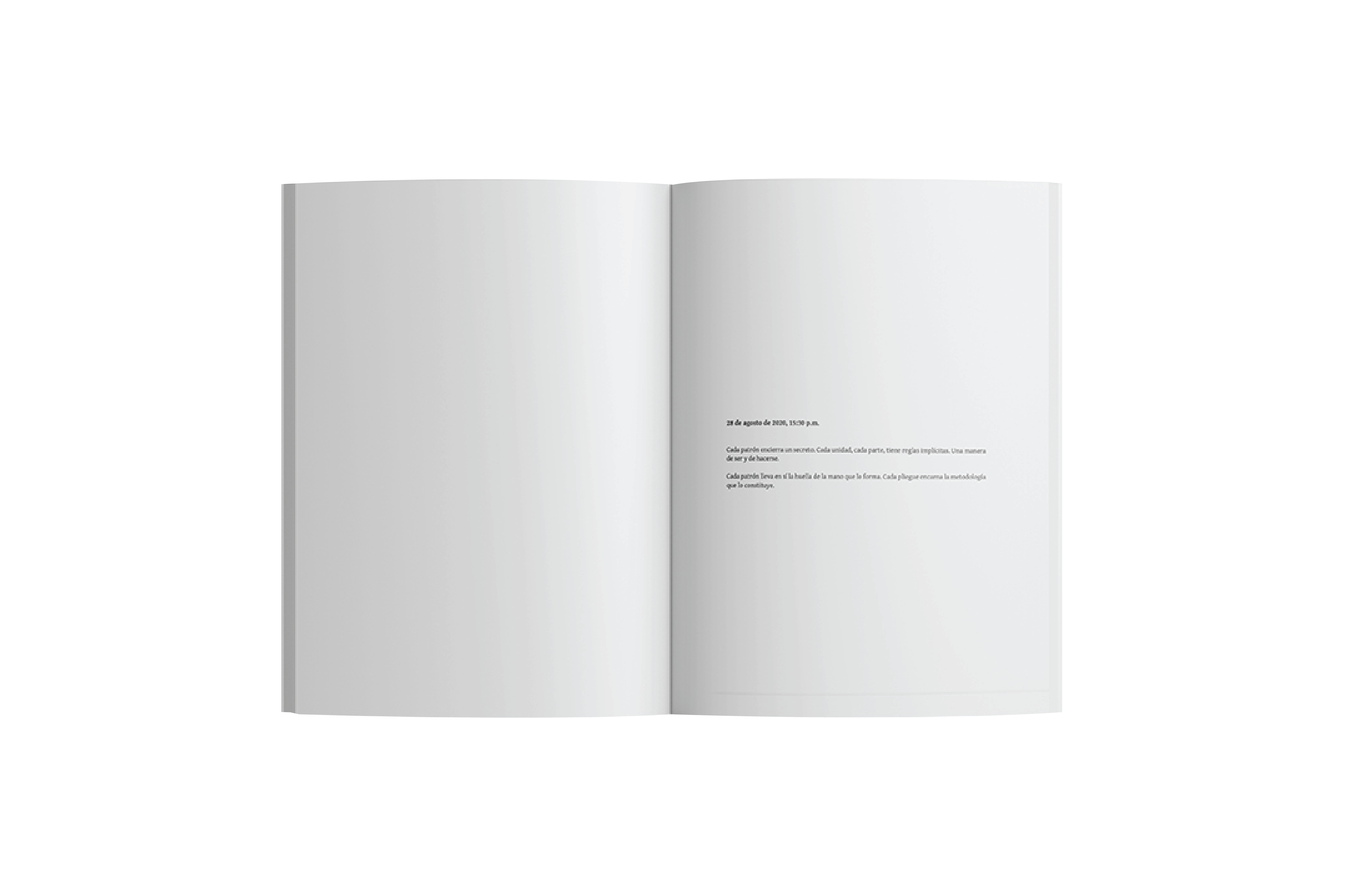 Un relato que compila más de 15 indumentos y/o piezas escultóricas creadas con pequeñas unidades de papel que se crearon entre diseño, técnica, reflexiones, exploraciones, laboratorios, clases, amistades, recuerdos de la infancia, duelos y alegrías. Estos atuendos son activados por performers en tiempo real e investigan las afectaciones que se producen tanto en su morfología como en los cuerpos que los visten.
