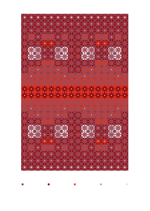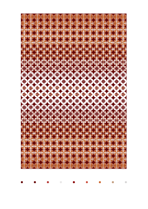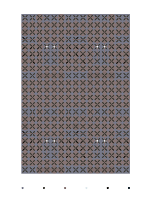 En el diseño de esta colección de tramas, el color actúa como un factor determinante de variabilidad visual. Su aplicación sobre la trama modifica su aspecto, alterando la percepción de los motivos y la relación entre figura y fondo. Las unidades gráficas se amalgaman, confunden y/o contrastan entre sí según la distribución del color generando múltiples versiones de lo mismo. El juego entre llenos y vacíos se potencia por el uso de diferentes tipos de contraste y temperaturas, incidiendo en la lectura espacial y estructural de la trama.