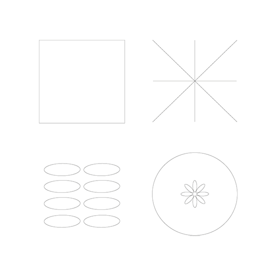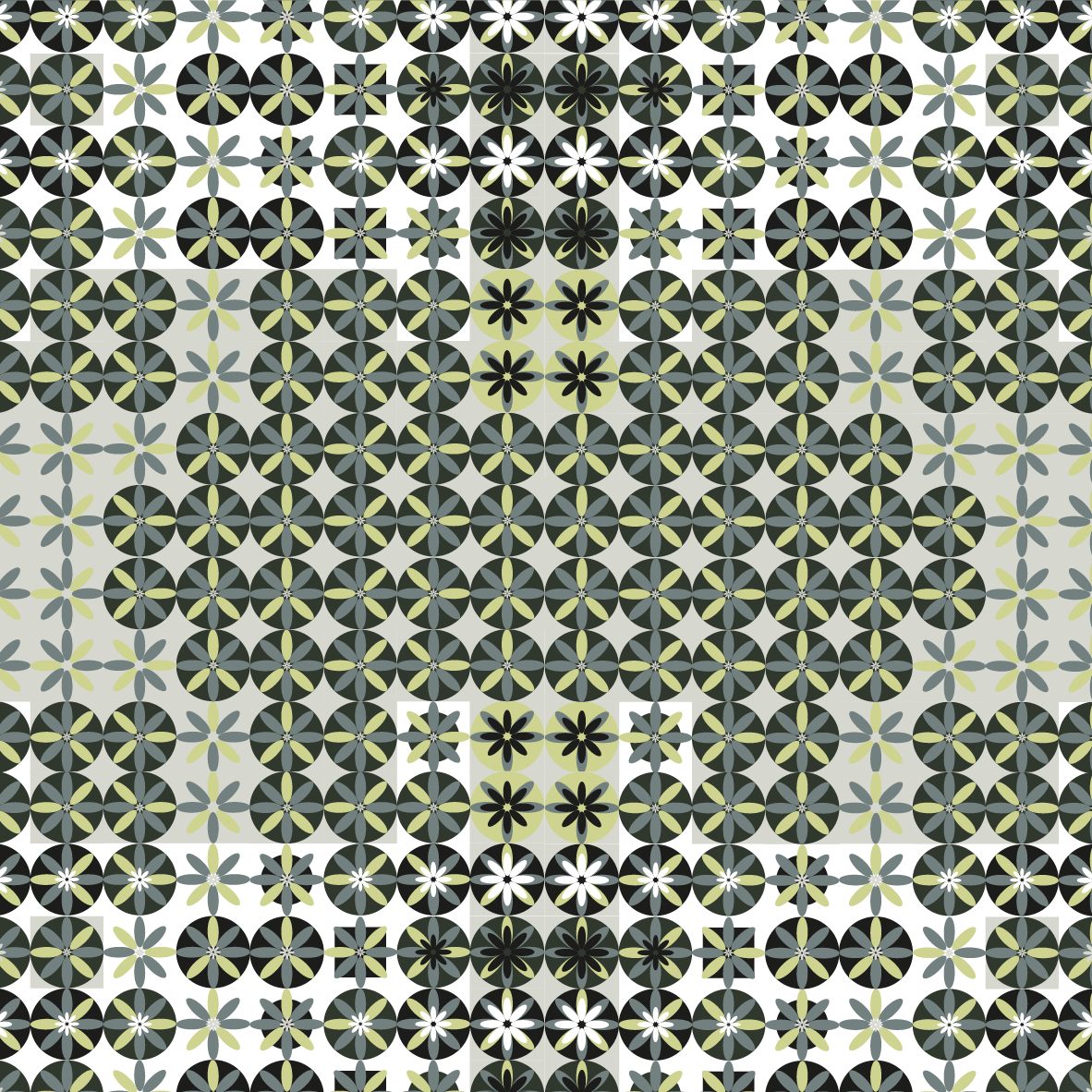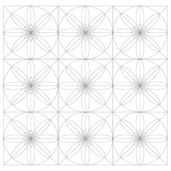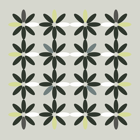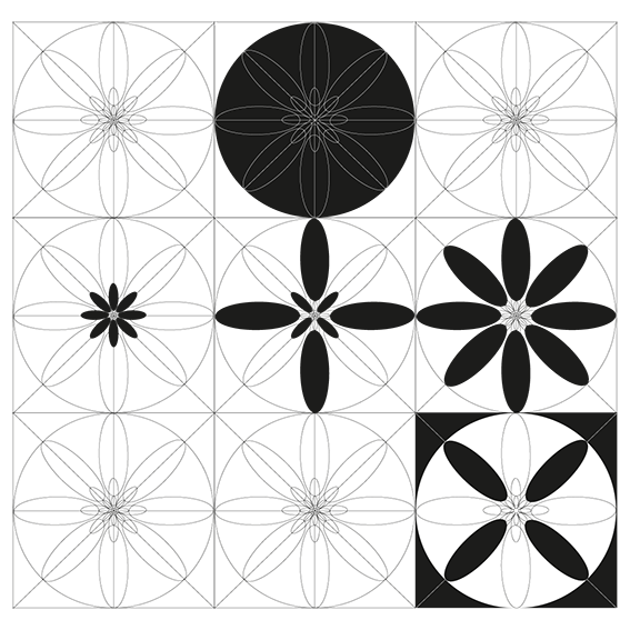 Mediante la aplicación de distintas gamas y combinaciones cromáticas, transformo la percepción de esa matriz, convirtiendo un único diseño estructural en miles de variaciones posibles. De la interacción entre forma y color emergen infinitas posibilidades morfológicas, todas derivadas del uso de una misma grilla compositiva.